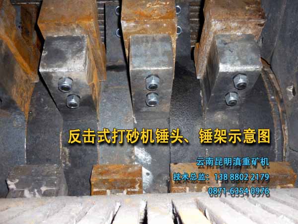 昆明滇重礦機的反擊式高效打砂機錘頭全部采用高鉻合金專門制造,設計之初就定為可四面換面使用,相當于提升4倍使用壽命。同時相對于錘破和反擊破,轉子部分錘架、輪芯均無磨損。